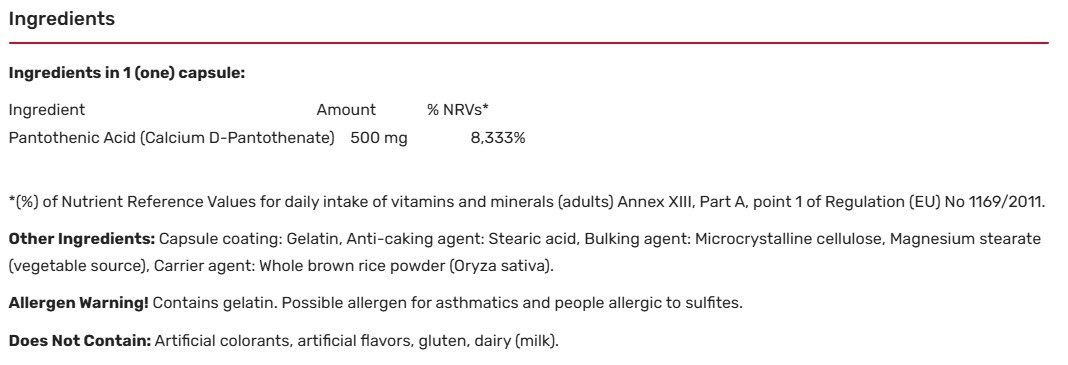 Pantothenic Acid 500 mg / 100 Caps