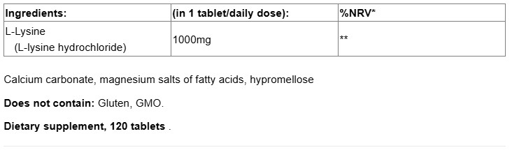 Comentarii despre NUTRICOST L-Lysine 1000 mg / 120 Tabs