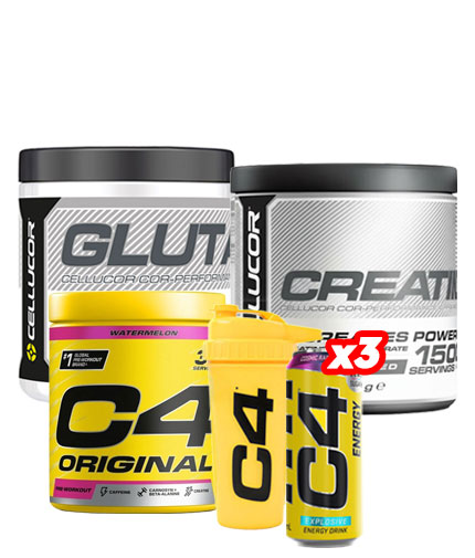 PROMO STACK C4 Glutamine + Creatine + Original + 3 Free Explosive Energy + Shaker