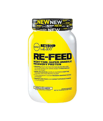 GNC Re-Feed Protein conține proteine din zer și cazeina micelară, cazeinat de calciu, care susțin sistemul imunitar și promoveaza creșterea masei musculare. Aceste proteine sunt în mod natural bogate in aminoacizi, și calciu. Cazeinatul de calciu este lent digerabil, potrivit pentru aportul înainte de culcare sau atunci când o lungă perioadă de timp (4-5 ore) nu vor fi consumate mese bogate in proteine.