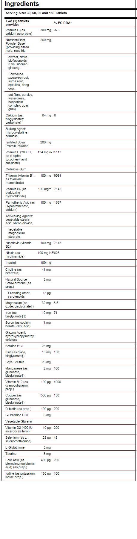 SOLGAR Formula VM2000 este un supliment alimentar de înaltă calitate, care conține un complex de minerale, vitamine, antioxidanti, aminoacizi, micronutrienti si fitoelementi pentru un echilibru biologic ridicat. Formula procura toate elementele esențiale pentru umblerea golurilor alimentare și suportă o gamă larga de funcții și procese în corpul uman. SOLGAR Formula VM2000 reprezinta o formă unică ,patentată de fier (brevetul № 4599152 Chelazomes) pentru absorbția maximă fără iritații ale tractului gastrointestinal,tipica utilizarii de suplimente alimentare care contin fier!