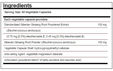 SOLGAR Siberian Ginseng Root Extract are acţiune hipoglicemiantă , fiind de folos bolnavilor de diabet. Antioxidantii continuti, intervin pentru sanatatea inimii si intarirea capilarelor. Ginsengul siberian creşte rezistenţa organismului in fata infecţiilor,previne virozele respiratorii, afecţiunile genito-urinare si reduce inflamaţia la nivel articular. Este benefic in restabilirea libidoului si a fertilitatii .