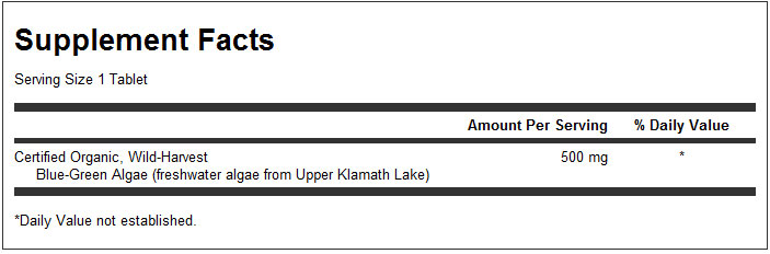 Organic Klamath Blue-Green Algae 500mg de la SWANSON este un supliment alimentar de inalta calitate, formulat pentru a oferi beneficiile naturale ale algelor albastre-verzi din lacul Klamath, o sursa bogata in nutrienti esentiali. Aceste alge sunt cunoscute pentru continutul lor ridicat de proteine, vitamine, minerale, aminoacizi si fitonutrienti, care contribuie la imbunatatirea sanatatii generale si a vitalitatii. Ideal pentru persoanele care doresc sa isi completeze dieta cu nutrienti naturali, acest supliment este perfect pentru integrarea intr-un stil de viata sanatos.