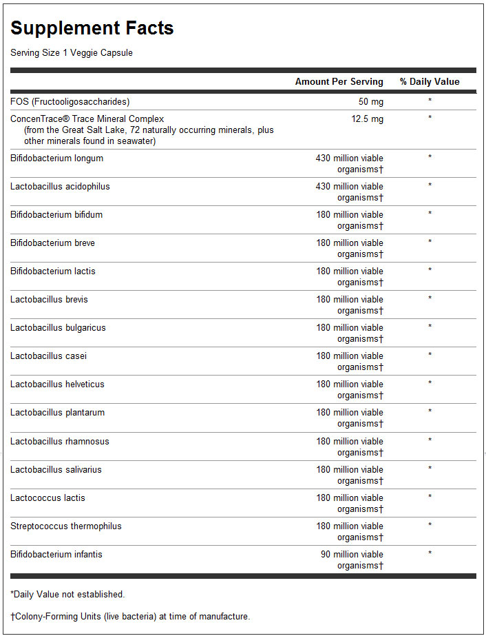 Ultimate 15 Strain Probiotic with FOS de la Swanson este un supliment alimentar de inalta calitate, formulat pentru a sprijini sanatatea digestiva si imunitatea. Acest probiotic avansat contine 15 tulpini diferite de bacterii benefice, combinate cu fructooligozaharide (FOS), care actioneaza ca prebiotice pentru a sustine cresterea si activitatea bacteriilor bune in intestin.