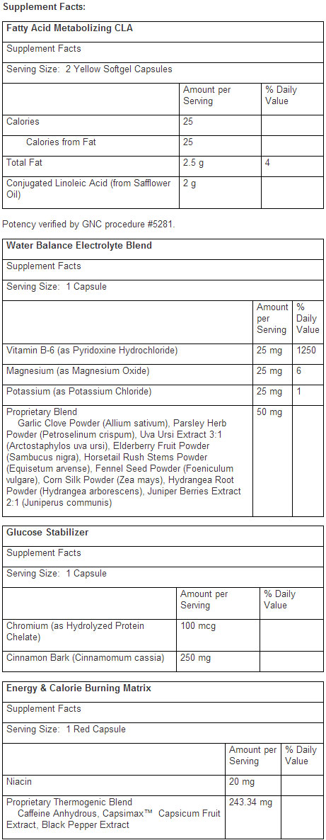 GNC Marked Blast & Burn conține acid linoleic (CLA), care reduce în mod eficient tesutul adipos din organism, îmbunătățește profilul lipidic din sânge și reduce nivelul ridicat de glucoza.In plus,acesta creste volumul muschilor si are un efect detoxifiant puternic.
