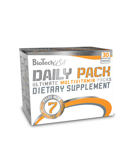 BIOTECH USA Daily Pack este o combinație de tablete, capsule, capsule gel, care asigură concentrație ridicată de vitamine prețioase, minerale și alți nutrienți. Formula include un complex de multivitamine cu vitamina A, C, E, D și B, care promovează sistemul imunitar și  promoveaza absorbția adecvată a substanțelor din organism.